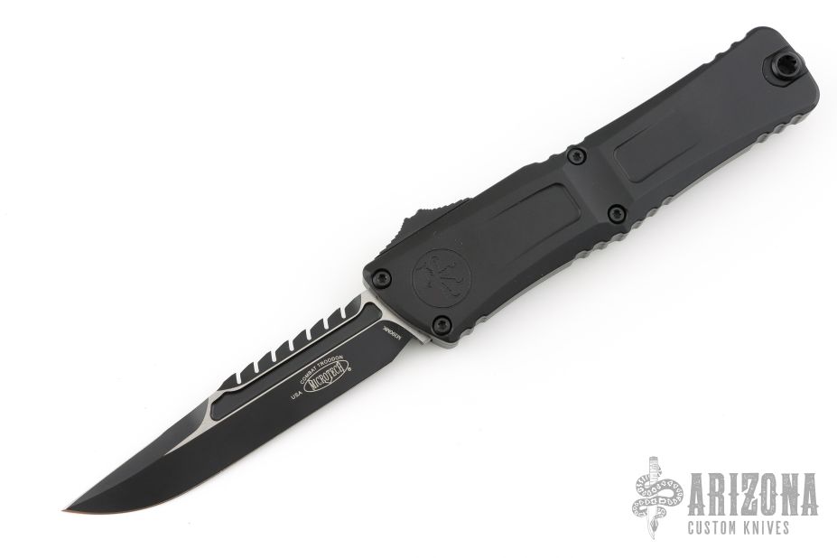 The all new Combat Troodon Gen III from Microtech Knives is here! Featuring a newly designed handle with an integrated glass breaker and a ceramic ball titanium pocket clip. The new OTF drive system makes these knives the smoothest that Microtech has ever produced. Extremely smooth/easy opening and closing. The new switch now rides on a milled platform, this helps break up pocket lint/debris and reduces friction which increases its reliability and lowers the frequency of cleanings. The handle now has Torx screws to make it easy to disassemble and clean. These models are completely redone and are sure to please!