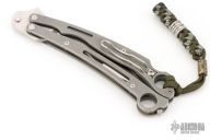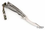 The Szabofly by Spyderco is no longer in production, if features a satin finish blade with swedge. The handle has bead blasted stainless steel handles with a spring loaded latch and a tip up reversible clip. Comes with an unmarked Spyderco box. Has scuffs and scratches throughout. Good user condition, fair condition otherwise.
