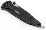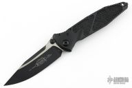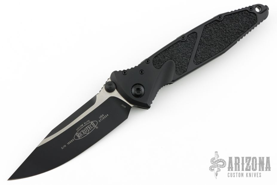 This Socom Elite from Microtech has a black/satin blade with dual thumbstuds and notched thumbrest. The handle has a black aluminum frame with non-slip rubber inserts and a tip down stainless steel clip, black hardware. Dated 07/2024 and S/N 18688. Excellent condition. Comes with original box and papers.