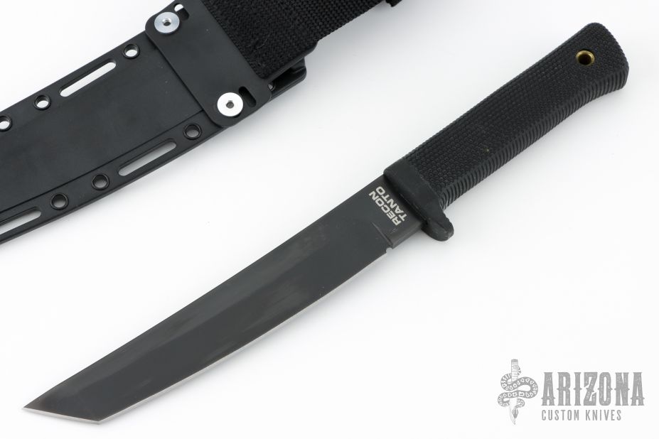 This Recon Tanto from Cold Steel features a black coated tanto blade, .200" blade stock and 1.205" blade depth, hidden tang construction. The handle is comprised of textured kraton over hidden tang construction. Comes with original box, and Kydex/nylon sheath. Excellent condition.
