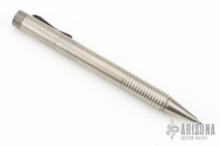 This pen is carefully crafted from premium materials and machined with state of the art CNC equipment. Everything except the body is made out of 6Al4V Titanium. The body is Titanium. The pen comes equipped with a medium black Fisher Space Pen pressurized ink cartridge. To replace the cartridge, unscrew the tip. Has a couple light scratches, otherwise excellent condition. Comes with original tube.