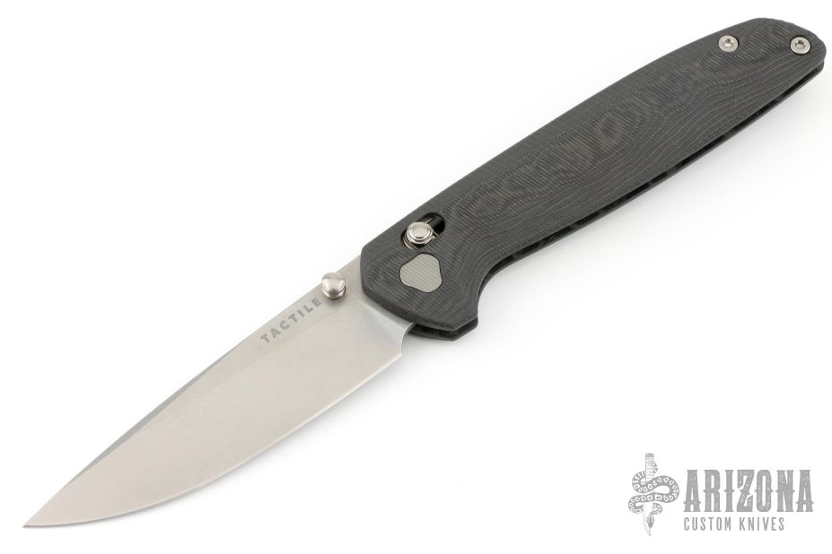 This Maverick by Tactile Knife is a Richard Rogers design with a stonewashed blade, milled black camo carbon frame with titanium pivot and barrel spacers, tip up titanium clip. Comes with original box and COA. Excellent condition.