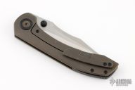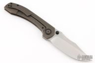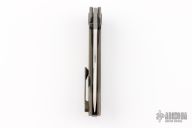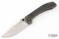 This Raptor by Brian Brown features a belt satin finished blade with dual thumbstuds and notched thumbrest. The handle has a tumbled and anodized titanium frame with a marble carbon fiber inlay, black pivot collars, tip up clip and backspacer. Comes with original box, zippered case and COA. Has a couple of scratches, otherwise excellent condition.