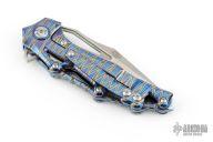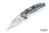 This Valkyrie by Defcon and Jungle Knife features a satin finished blade with thumbhole and notched flipper. The handle has a flamed titanium frame with carbon fiber inlay. Comes with original box and tool. Excellent condition.