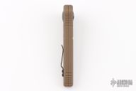 Paragon Knives’ Warlock diverges from traditional folding knives with its radical opening mechanism. Your first hint for deploying the blade is the oversized, textured pivot, which serves as a double button locking system. By pushing both sides of the pivot at the same time, the handle splits apart to reveal the blade; with gravity and a flick of the wrist, it will swing into the open position. It's an entertaining and novel opening mechanism that is effective, providing solid lock-up. The Warlock knows how to get to work, and will work as long as you do, but it’s also capable of scratching your itch to fidget. It’s the sort of knife you’ll always be happy to find in your pocket.