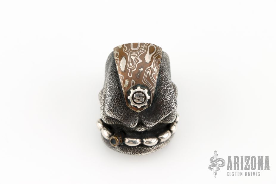 Custom SOB Puncher Ring Size 7.5 by Starlingear. Comes with leather pouch, metal Warranty card and COA card. Excellent Condition. Sterling silver ring, copper cigar, mokume mohawk.