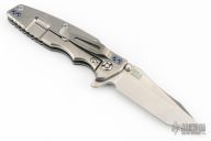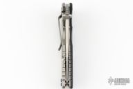 This Eklipse by Hinderer Knives features a stonewashed tanto blade with dual thumbstuds, flipper and notched thumbrest. The handle has a stonewashed titanium frame and liner with a textured black G-10 scale, titanium clip and hardware. Nice detent, lockup and blade seating. Excellent condition.