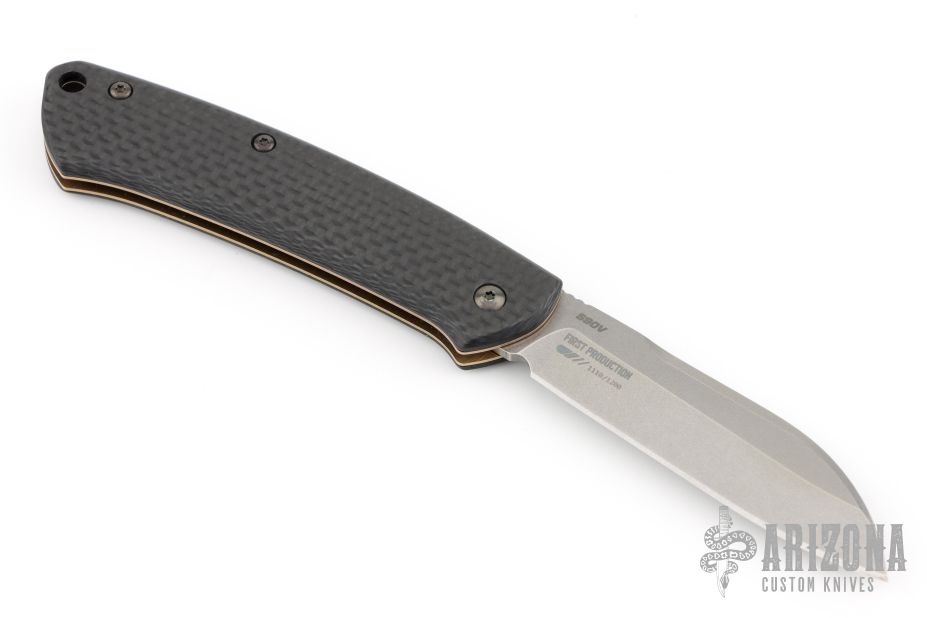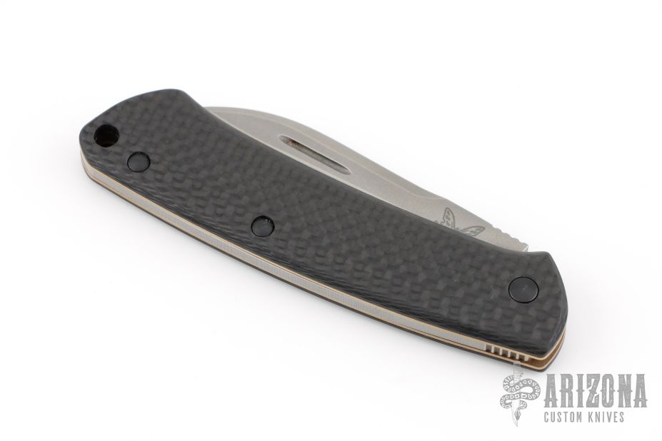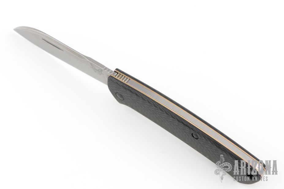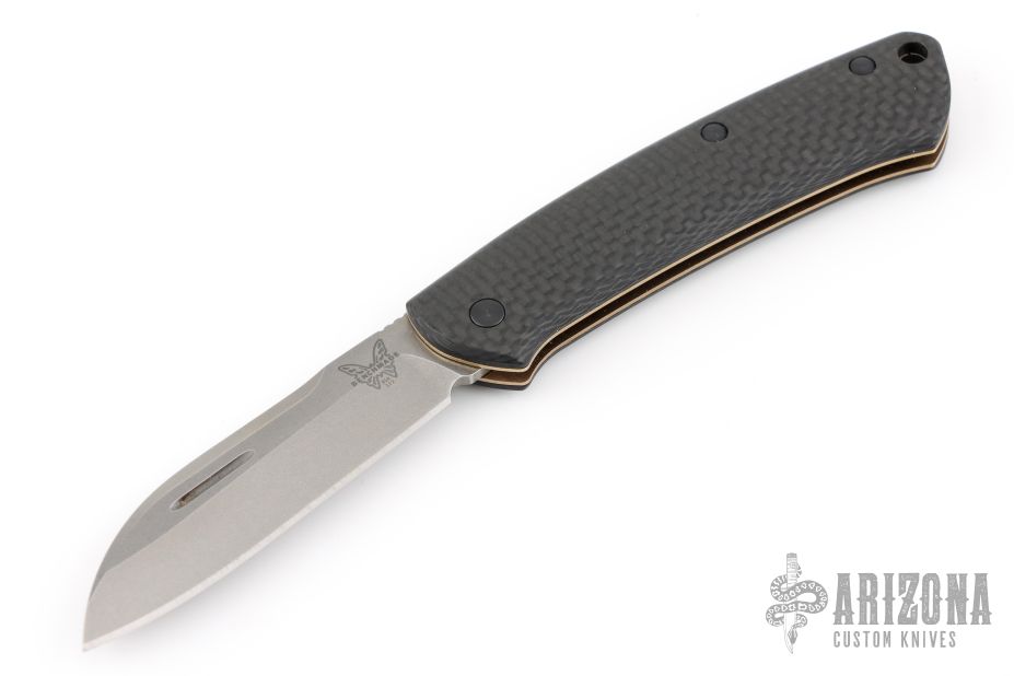 This Benchmade Proper slip joint folder is a modern take on a classic gentleman's knife design. This model features Carbon fiber covers paired with a stonewashed sheepsfoot blade made from premium S90V stainless steel. Skeletonized stainless steel liners offer reduced weight for comfortable everyday carry in a pocket or pack. A lanyard hole in the handle accommodates key ring or lanyard attachment.