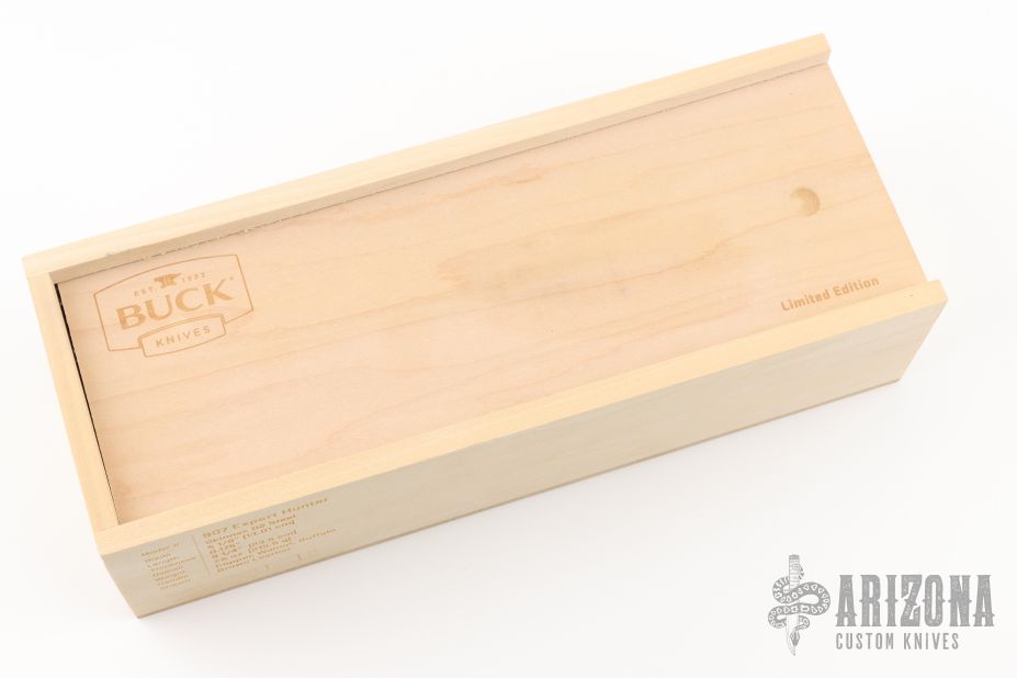 The Buck 907 Expert Hunter is full size fixed blade skinning knife released as a limited production as part of Buck's Legacy Collection. The handle is striking, make from figured Walnut with accents of Buffalo Horn and Copper fittings while the blade is beautifully satin finished D2 offering excellent performance if you can bring yourself to use this handsome blade. Limited production of 250 pieces. Made in the USA and backed by the Buck "Forever" Warranty.
