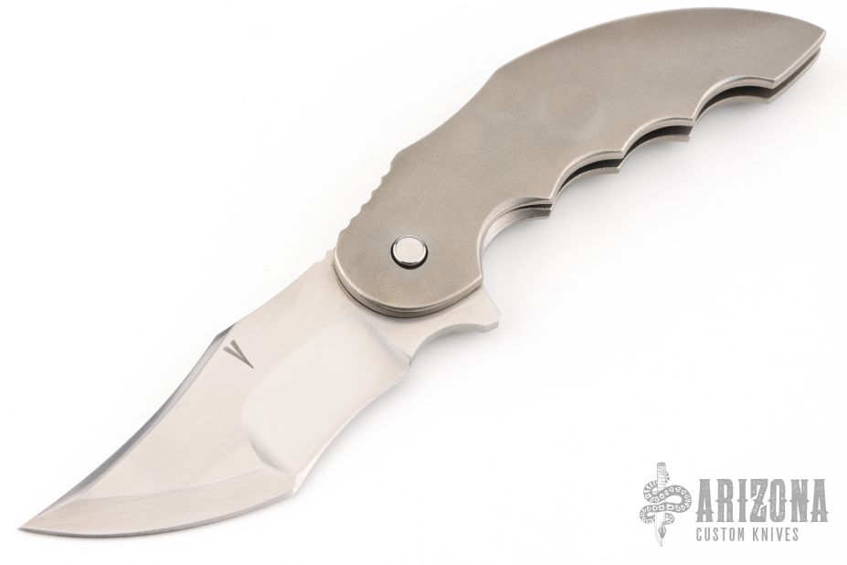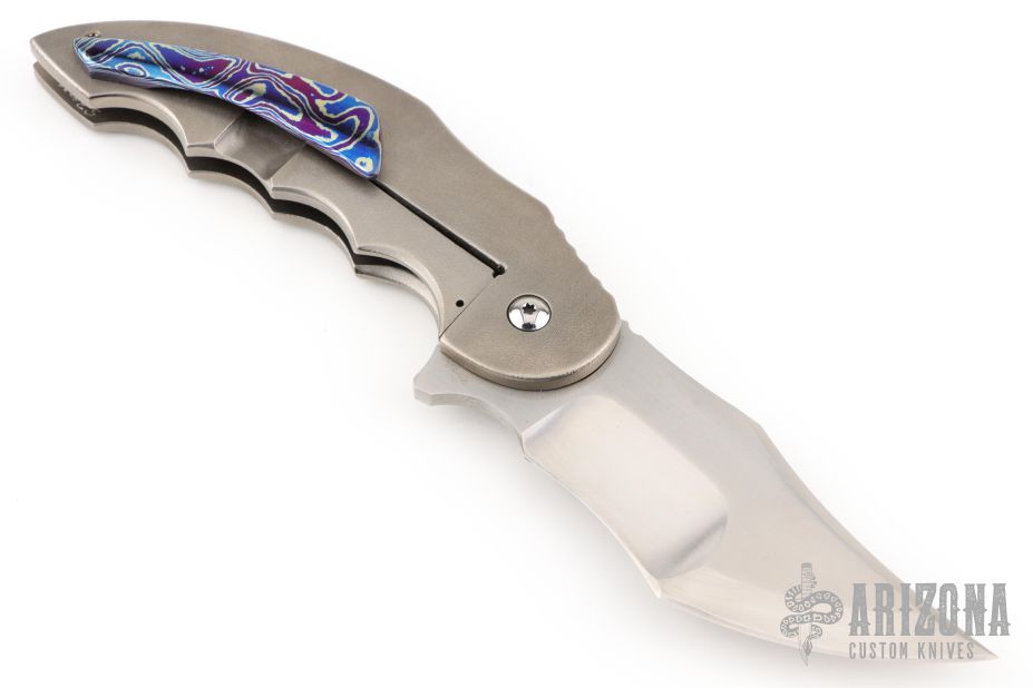 "Each blade is handmade by me in the USA using manual machines. I specialize in hard use tactical folders with the best materials I can get my hands on. My current blade steels are RWL-34, stainless steel Damascus, and San Mai. I use various materials that include Titanium, Carbon Fiber, Zirconium, MokuTi, Timascus."