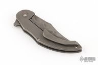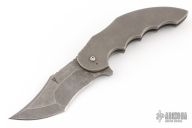 This Little Homie #7 by Jeff VanderMeulen has a dark stonewashed multi-ground blade with notched thumbrest and flipper. The handle has a stonewash finished titanium frame and tip up clip with hidden screws. Comes with a zippered case and COA. Excellent condition.
