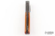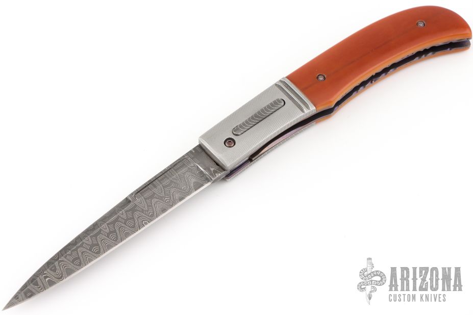 "Ever since I can remember I have had a fascination with knives. My grandfather gave me my first pocketknife when I was 5, and it was that moment that did it. I started making knives by taking apart my mothers kitchen knives. My parents thought that there was something "wrong" with me because I had a fascination with sharp objects. That all changed when I took them to a local knife show and showed them a whole room of people interested in knives. I seriously began making knives when I was 16. I have been making knives for over 25 years. For the past 10 years I have mainly concentrated on making folding knives and automatics. I mainly concentrate on making one-of-a-kind folding knives of my own design, but I do occasionally make a few fixed blades. I specialize in unique file work patterns, and I also do simple carving and some of my own sheath work. For steels I mostly use Damascus, but also use 154CM, CPM154, D-2, 1095, W-2 and others. Handle materials include Exotic Woods, Stag, Pearl, and various types of Ivories including Elephant, Mammoth, and Walrus. As far as knife builds go, I think I am going to concentrate on building more elaborate autos as well as converting some of my older designs into autos. I appreciate the challenge of making an auto, and it keeps knife making exciting for me.”