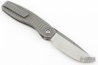 This FSD by Craig Brown Knives features a drop point stonewashed polish blade and notched flipper and fullers. The handle has a two-tone tumbled titanium frame with milling, titanium tip up clip and backspacer. Nice detent, action, blade seating and lock up. Comes with original hard case with certificate #211. Excellent condition.