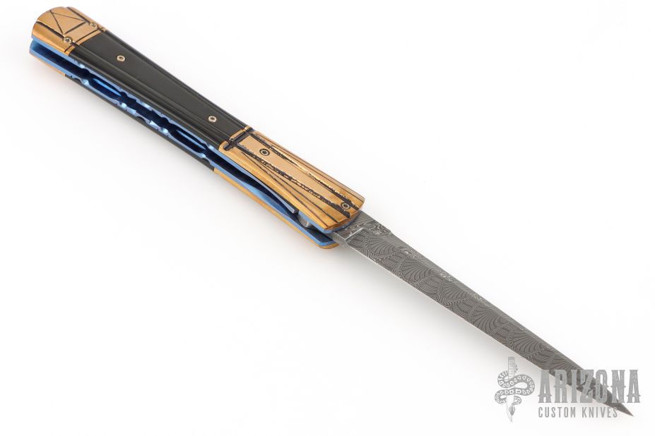 "Ever since I can remember I have had a fascination with knives. My grandfather gave me my first pocketknife when I was 5, and it was that moment that did it. I started making knives by taking apart my mothers kitchen knives. My parents thought that there was something "wrong" with me because I had a fascination with sharp objects. That all changed when I took them to a local knife show and showed them a whole room of people interested in knives. I seriously began making knives when I was 16. I have been making knives for over 25 years. For the past 10 years I have mainly concentrated on making folding knives and automatics. I mainly concentrate on making one-of-a-kind folding knives of my own design, but I do occasionally make a few fixed blades. I specialize in unique file work patterns, and I also do simple carving and some of my own sheath work. For steels I mostly use Damascus, but also use 154CM, CPM154, D-2, 1095, W-2 and others. Handle materials include Exotic Woods, Stag, Pearl, and various types of Ivories including Elephant, Mammoth, and Walrus. As far as knife builds go, I think I am going to concentrate on building more elaborate autos as well as converting some of my older designs into autos. I appreciate the challenge of making an auto, and it keeps knife making exciting for me.”