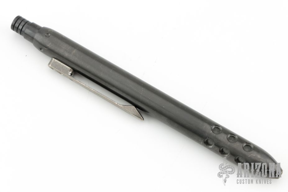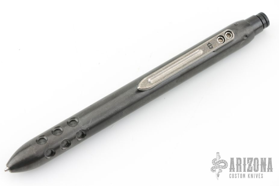 This Pen by Blackside Customs features a zirconium .450" diameter body with a stonewashed titanium clip with a black stainless steel click mechanism. Has a couple scratches, otherwise excellent condition.
