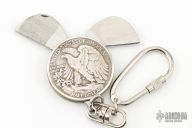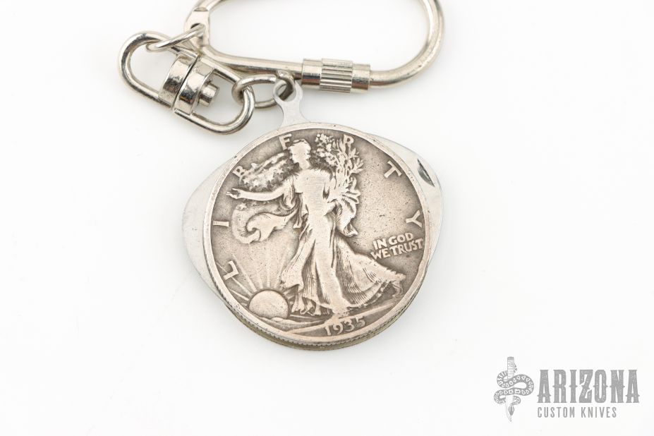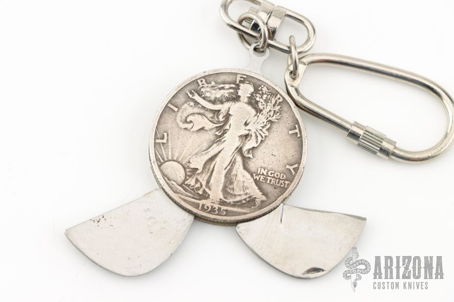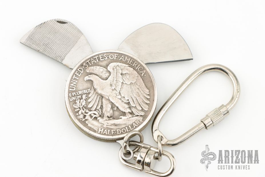 1935 Liberty Half Dollar Coin Knife. Has a blade and a file. Has scratches, otherwise good condition.