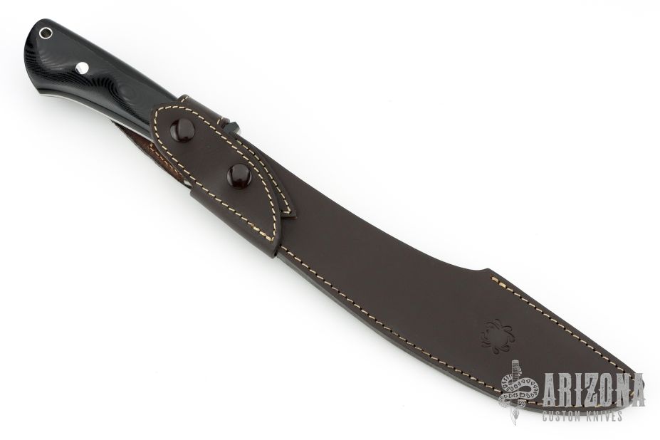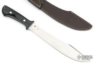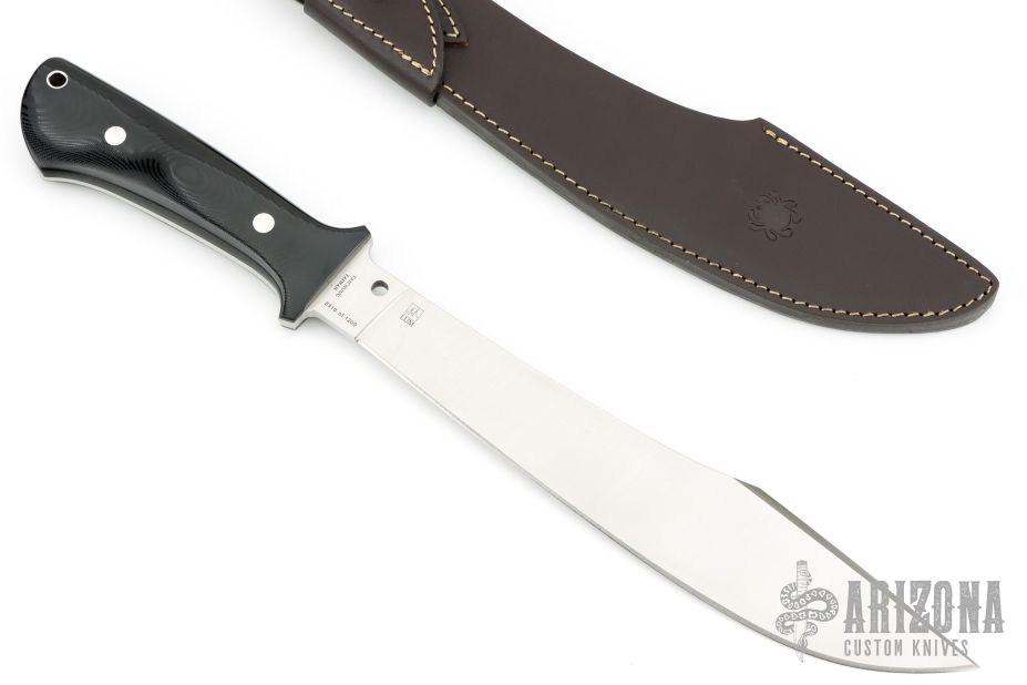 The Spyderco Darn Dao knife is based on a rare custom design by Bob Lum, and was inspired by the "single knife" broadsword of classic Chinese martial arts. This formidable fixed blade is equipped with a satin finished, full-flat ground CPM-154 stainless steel blade with an unsharpened swedge to offer a fine point. Its full tapered tang is fitted with contoured black G-10 scales that flare at the bottom for a positive grip. The Darn Dao is paired with a handcrafted leather sheath with a thumb-break-style snap to provide secure retention and a quick draw. The Darn Dao is a Spyderco "Flash Batch", which is similar to a Sprint Run, but features a brand new design not previously produced. Each knife in this Flash Batch is individually numbered. This is a one-time-only production run. This knife is #0310 of 1200. Comes with original papers and nylon zippered case. Excellent condition.