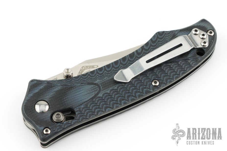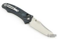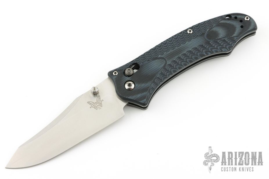 This 950 Axis Lock Rift from Benchmade features a clip point matte finish blade with swedge and dual thumb studs. The handle is comprised of machined black/white G-10 with black coated stainless steel liners and reversible tip up pocket clip. Has a couple light scuffs, otherwise Excellent condition.