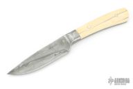 This One Sided Integral Hunter by Jason Magruder features a Damascus blade (Motorcycle Chain and 1095), .163" blade stock and 1.036" blade depth, full integral tang construction. The handle is a one sided integral with a mammoth ivory scale. Comes with zippered case and a copy of a post from Instagram.