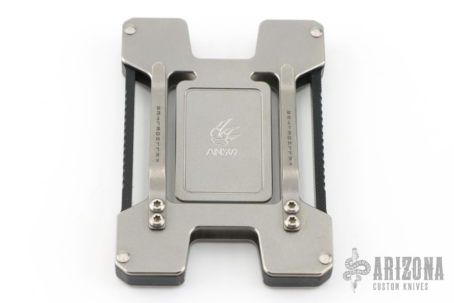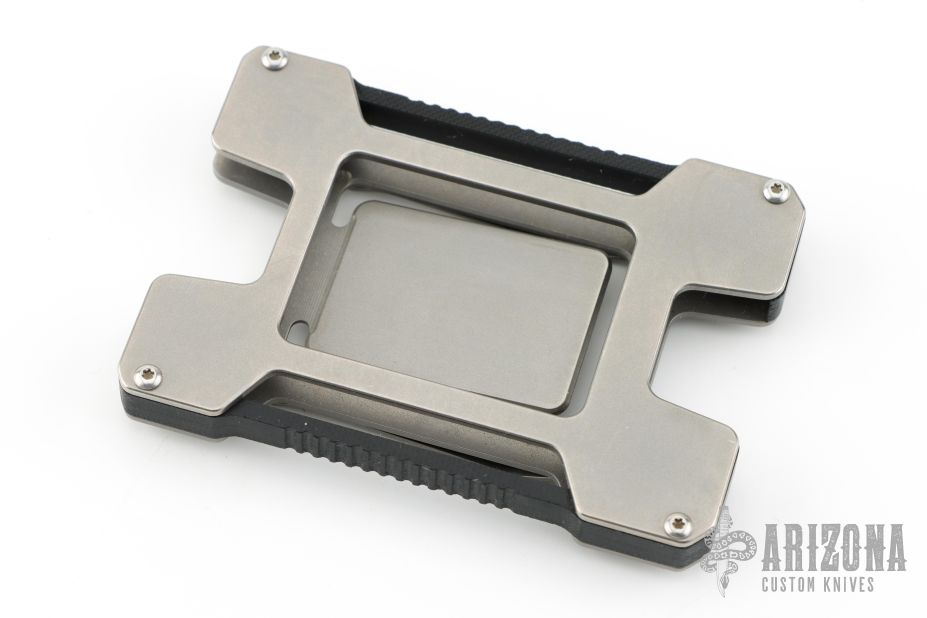 Matrix Credit Card Holder by Jens Anso. Titanium Construction over black G10 spacers. Modified by Gray Precision who added two Fellhoelter clips to the frame as a money clip. Excellent condition.