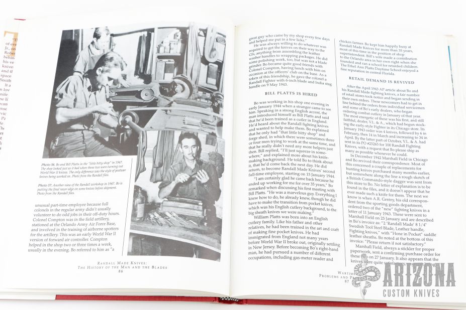 Few modern knifemakers got started without first being inspired by something they read or heard about Bo Randall. He pioneered handmade knives at a time when no one else was even considering it. Instead of trying to keep that market to himself, he promoted the business for everyone concerned, establishing a museum for visitors in his shop and offering encouragement to budding knifemakers. The models offered by Randall have been developed over a period of 80 years from personal experience, extensive research and the study of hundreds of designs submitted by individuals around the world requesting custom-made knives. Each model has been thoroughly field-tested and has proven to be properly shaped and designed for its particular use. Randall knives are 100% hand made and no two are exactly alike. Demand is so great for all models that there is typically a wait of a few years to deliver a new knife ordered from Randall. Bo and his son Gary managed the business side by side for over twenty-five years. Gary continues the tradition of hand crafting knives that bear the Randall Made trademark along with his sons, Jason and Michael, of the next Randall generation. Inducted into the Blade Magazine Cutlery Hall of Fame in 1983. W.D. "Bo" Randall passed away in 1989.