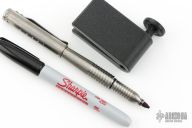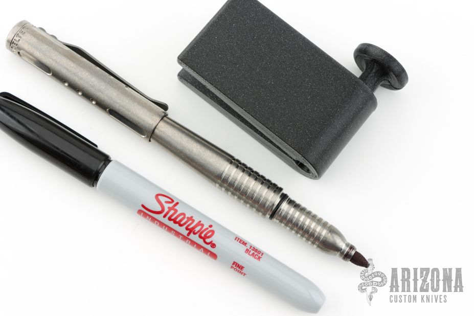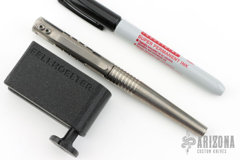 This Mark22 features full titanium construction. Pull cap, and felt tip marker internals. Comes with 3D printed tools to assist in gutting a Sharpie for a refill. Excellent condition.