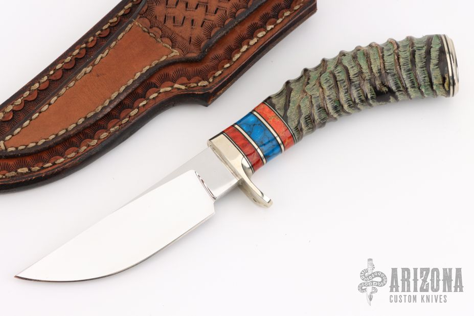 D'Alton Holder was born in Heald, Texas in 1940, was raised in Amarillo and graduated from West Texas State University with degrees in Fine Arts and English Literature. He retired early after 25 years with Diamond Shamrock Corp to become a full time knifemaker in 1988. He began making knives in 1968, joined the Knifemakers Guild in 1973 and was elected to the board in 1976, secretary/treasurer in 1978, President 1982, he served as Vice President 1984. Re-elected to board in 1988 and was elected President again in 1996. Received the Red Watson award in 1982. Named to the NSSF Hall of Fame in 1983. D'Alton is an avid horseman, hunter and fisherman. He prefers to work with natural handle materials and ATS-34. D'Alton has taught over 75 knifemakers, including people like Jim Hardenbrook and Bill Cheatham. Many of his knives are engraved by his wife, Pat Holder. Inducted into the Blade Magazine Cutlery Hall of Fame in 2003. D'Alton passed away in 2022.