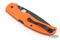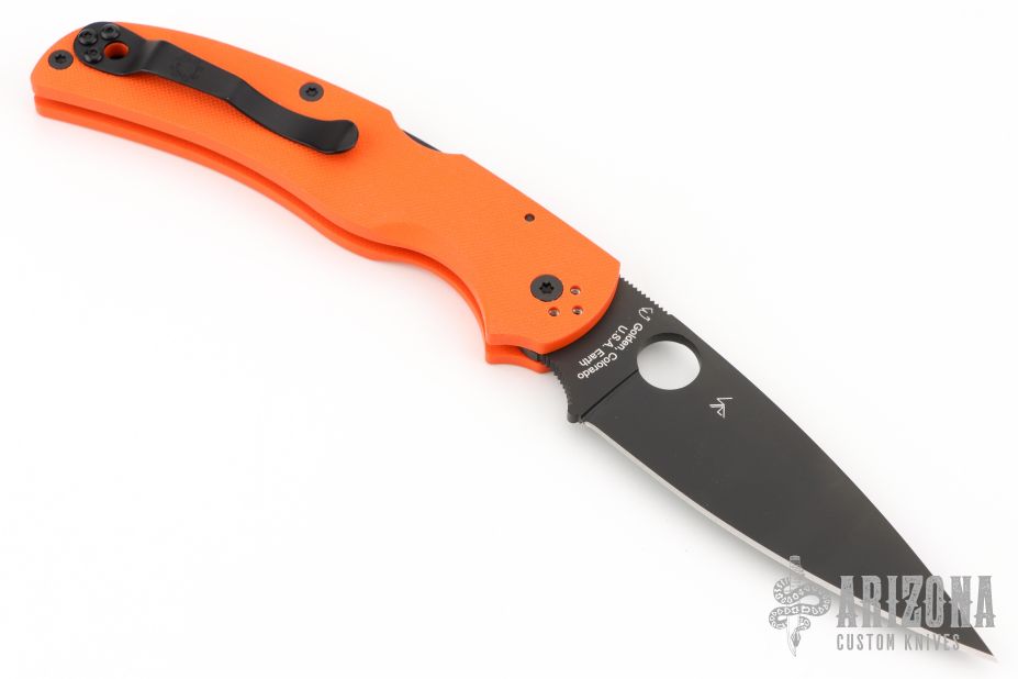 This Native Chief takes the time-tested design of the original and stretches it out to create a longer and slimmer profile with even more cutting performance. Orange G-10 scales and a black full-flat ground blade solidify the design. Textured G-10 handle scales are backed up by a precision-machined lockback mechanism. 4-position pocket clip allows for fully ambidextrous tip-up or tip-down carry. Excellent condition. Comes with original box and papers.