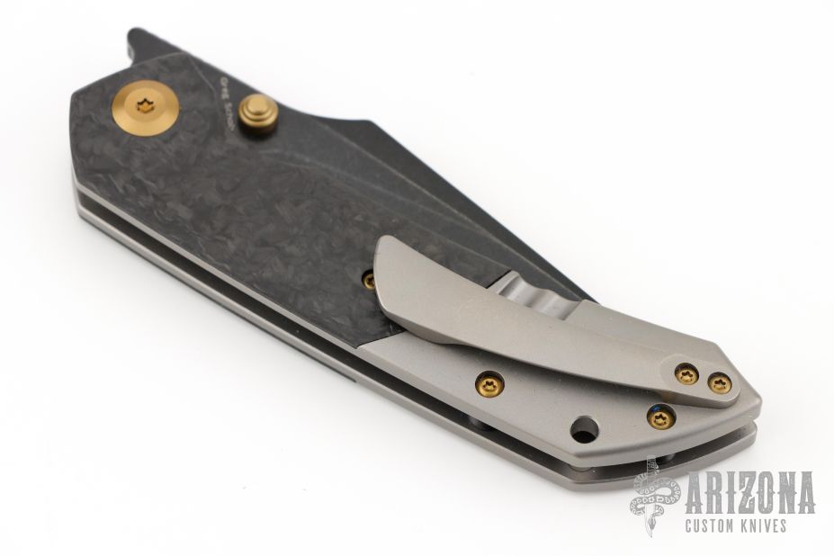 - Shred carbon fiber handle scales with rear titanium bolsters.