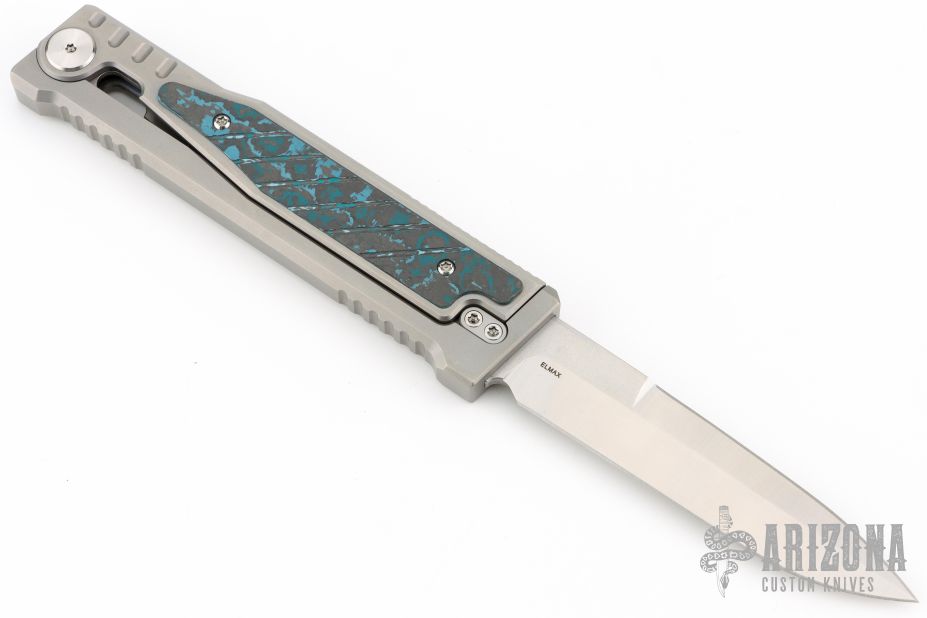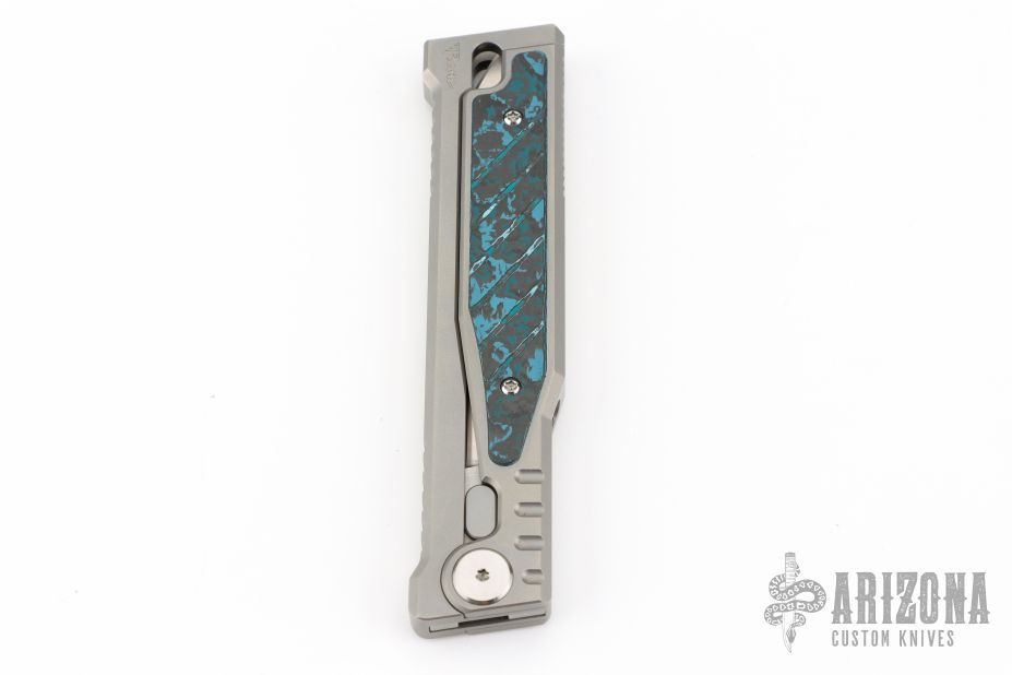 - Bead blasted titanium handle with textured Fat Carbon scales.