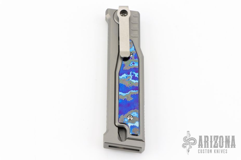 The smaller EXO-M has all the benefits of the full-size EXO from Reate Knives, but has even more to offer! For one, the smaller size makes this an even more convenient pocket knife. Plus, with a secure titanium pocket clip and lock, Reate ups their game with this gravity OTF Knife. A safety slide lock on the face of the handle is ideal for user safety, and the new pocket clip makes EDC carrying as easy as can be. By pinching the milled handle scales and dropping the frame at an angle, you can easily slide the blade in and out with nothing but gravity. If you haven't guessed it already, this means hours of quality fidgeting! That aside, the build and materials of this knife are Reate standard: simply excellent and endlessly functional. Like the EXO, the EXO-M boasts flawless fit and finish, smooth action, and a razor edge to meet your cutting needs. It includes a leather slip for safe carrying as well as the titanium clip.