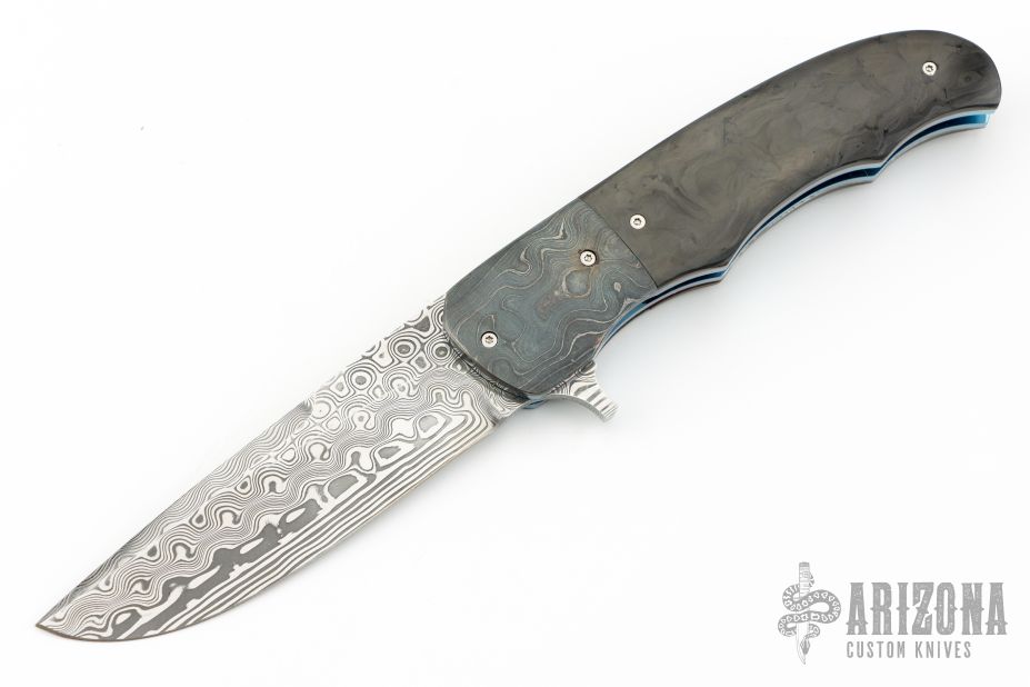 Home Products Linerlock Flipper - Damascus and Carbon Fiber