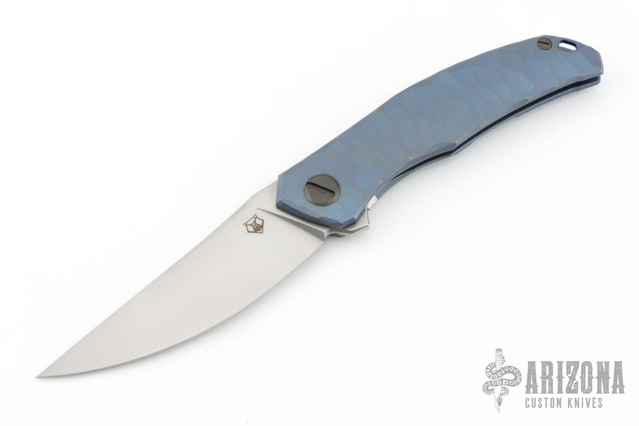 Titanium Frame-Lock Handle Scales w/ "Blue Machine" Finish done by Rip Knives