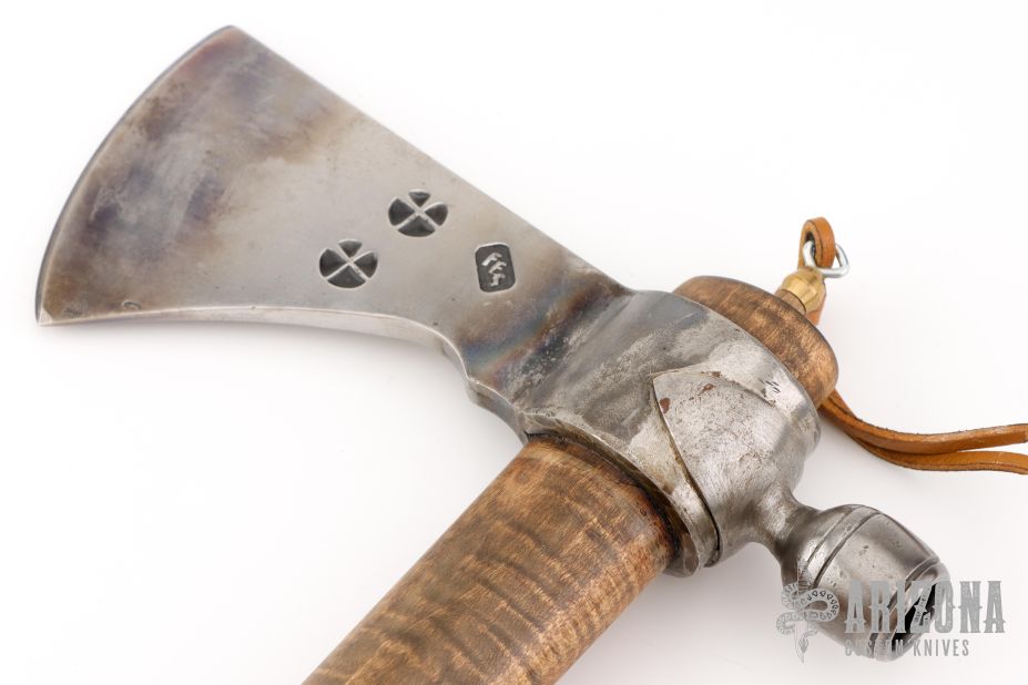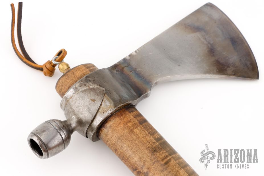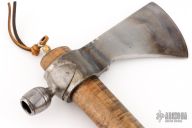 "I started bladesmithing and blacksmithing in 1982, after getting involved in re-enacting. For the next twenty plus years I forged knives, tomahawks and various other items, mostly for re-enactors. Five years ago I started bladesmithing and blacksmithing full time. I take great pride in making the best knives and tomahawks that I can, starting with forging, grinding, and heat treating and including the hand sewn leather sheaths.