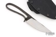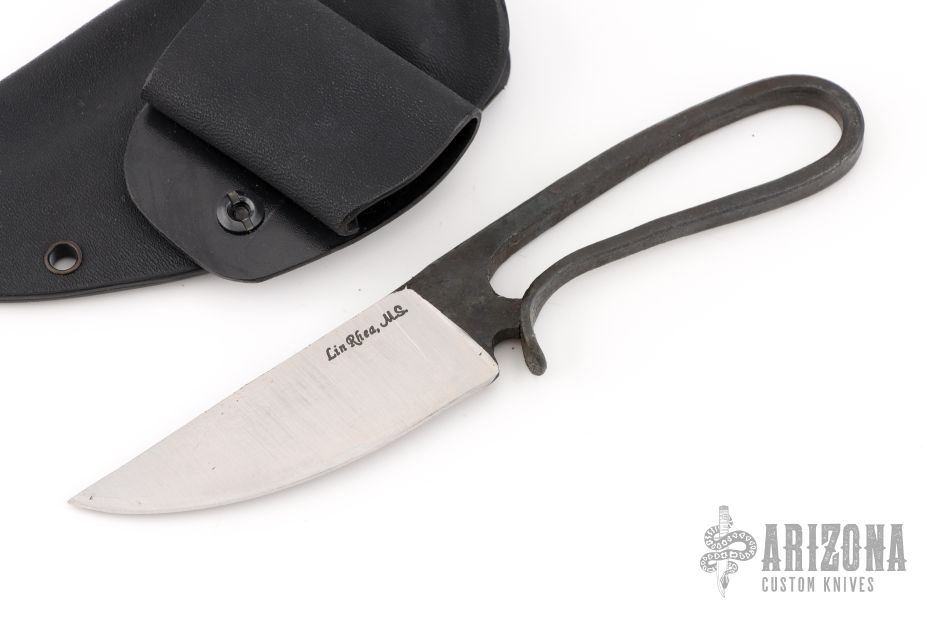 This Integral Hunter by Master Smith Lin Rhea features a satin finished blade with .226" blade stock and 1.20" blade depth. The handle and blade are all one piece of hand forged 80CRV2. Comes with a Kydex sheath. Has some scratches on the blade, great condition otherwise.