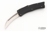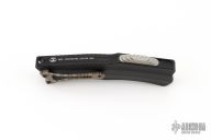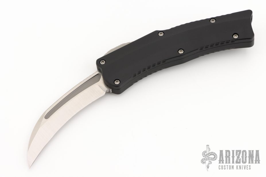 This Custom ROC by Heretic Knives features a hand ground stonewash finished blade with fullers and notched thumbrest. The handle has a black aluminum chasis with a tip down flamed titanium clip with ceramic ball. Comes with original box, and COA dated 05/22 #034. Excellent condition.