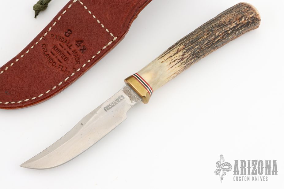 The Model 8 is especially suitable for small fish and feathered game. This is a non-catalog "old style" Model 8 with a clip point blade, sharpened top edge, and reduced hilt.