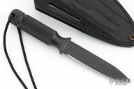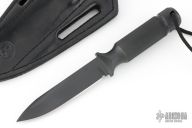 "Designed to incorporate the two basic criteria required in knives destined for hard field usage, these spear-points have plenty of blade weight and good strong points. This design has been used by soldiers all over the world who have found them to be extremely good weapons as well as rugged dependable tools. The 4” bladed Shadow III is a good everyday carry knife. " Knife and sheath are in excellent condition. The blade has a false top edge, .183" blade stock and .842" blade depth, integral construction with hollow handle. Comes with original black leather sheath.  Excellent Condition.