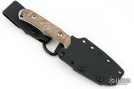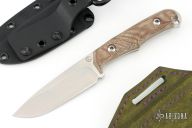 With backpacking hunters and outdoorsmen in mind, the Backpacker is a lightweight knife designed for skinning and utility.  A tribute to Chris' original 1980s Backpacker design, the newest iteration echos Chris' original details with modern materials. Its blade provides ample belly and a drop point shape for more control.  Its canvas Micarta handles provide comfort without sacrificing agility, though they can be removed for deep cleaning or extra-lightweight hiking.  The slim KYDEX® sheath fits snugly with the Backpacker's handles on or off.  Razor-sharp and made to last, the Backpacker will work hard from the backcountry to home.