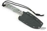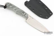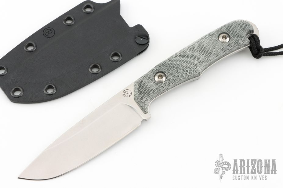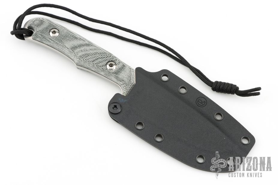 With backpacking hunters and outdoorsmen in mind, the Backpacker is a lightweight knife designed for skinning and utility.  A tribute to Chris' original 1980s Backpacker design, the newest iteration echos Chris' original details with modern materials. Its blade provides ample belly and a drop point shape for more control.  Its canvas Micarta handles provide comfort without sacrificing agility, though they can be removed for deep cleaning or extra-lightweight hiking.  The slim KYDEX® sheath fits snugly with the Backpacker's handles on or off.  Razor-sharp and made to last, the Backpacker will work hard from the backcountry to home.