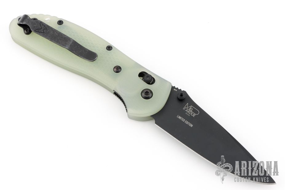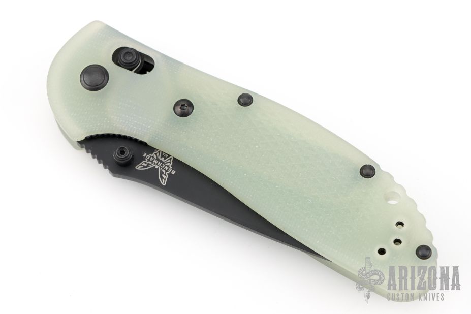 This Limited Edition Griptilian 551BK-2205 features a black Cerakote finished M4 steel blade with a plain edge. The handle has textured jade G-10 with black barrel spacers. The pocket clip can be reversed for right or left tip up carry. The AXIS lock system makes the knife easy to open and easy to close. This is a limited run. Comes with original box, drawstring pouch and papers. Excellent condition.
