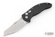 This EX-A04 Automatic model has a 4" wharncliffe style blade with a tumbled finish and a black aluminum handle. Comes with original box, zippered case and papers.