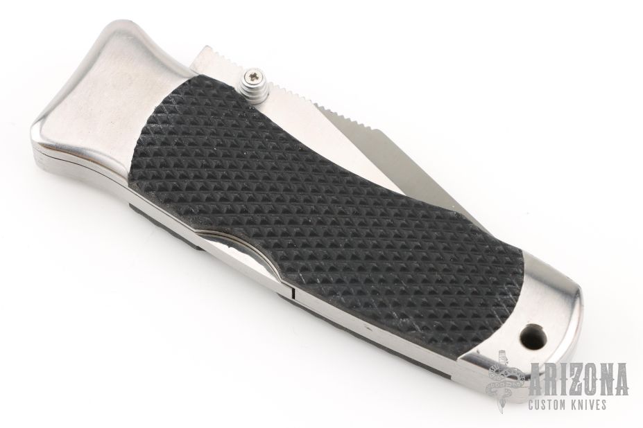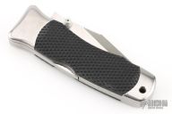 This Vintage Large Tomcat lock back by SOG features a satin finish blade with false top edge and dual thumbstuds. The handle has satin finished stainless steel bolsters, liners and backspacer, checkered rubber scales. Strong lock up. Has some scratches, otherwise good condition. 1986-2006 20th Anniversary