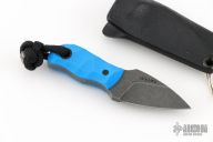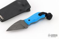 This Pocket Lint by Auxiliary Manufacturing features an acid-tumbled drop point blade with .195" blade stock and .746" blade depth. The handle has blue G-10 scales. Comes with a kydex sheath with split ring. New from maker!