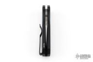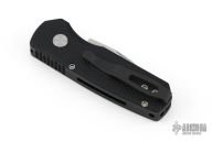 This Runt 5 by Pro-Tech features a mirror polished stonewashed blade with satin finished flats. Hand ground by Mike Irie. The handle features a black aluminum frame, a black stainless steel tip up pocket clip and an abalone inlaid push button.  Serial number 5 of 50. Comes with original box, pouch, and papers. Has a couple light scuffs on the clip, otherwise Excellent condition.
