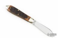 This slipjoint by Great Eastern Cutlery features a satin finished blade with nail nick. The handle has nickel silver bolsters and brass liners, Jigged Brazilian Cherry Wood covers, steel spring. Comes with original tube. Excellent condition.