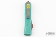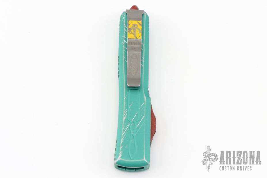 This Star Wars themed Ultratech by Microtech knives features a standard tanto blade with fullers and apocalyptic finish. The handle has a green battle worn aluminum frame with red and yellow hardware. Comes with original box and papers. Dated 03/2020. Excellent condition.