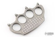 This Hand Tank by Microtech features two-tone tumble finished titanium construction with milled frag pattern on the handle and Bead Blast Spikes. Comes with original box, Excellent condition.