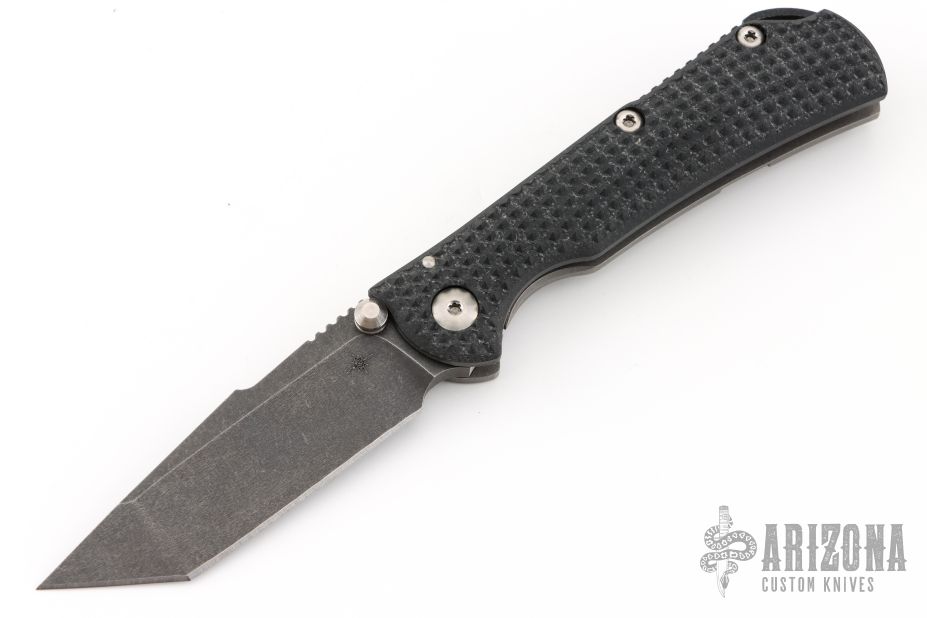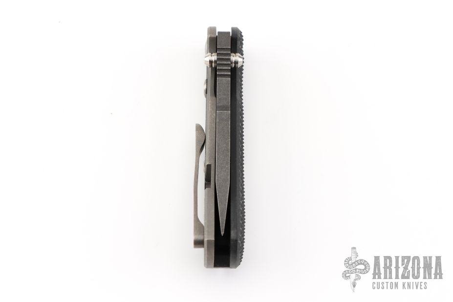 - Black anodized titanium handle with a super textured G-10 scale.