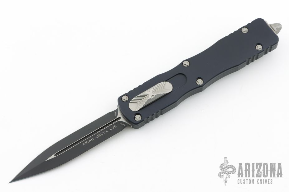 This Dirac Delta OTF automatic by Microtech features a D/E black blade with a standard edges. The handle is black aluminum with stainless steel tip down clip and blasted hardware. Serial number 1217 and dated 12/2019. Comes with original box and papers. Has a couple light scuffs, otherwise excellent condition.